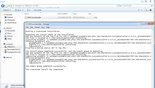 10: /// installutil /LogFile=C:\JMH\EventLogCustomInstaller.InstallLog /AssemblyName "JMH.SharePoint.CustomInstaller"