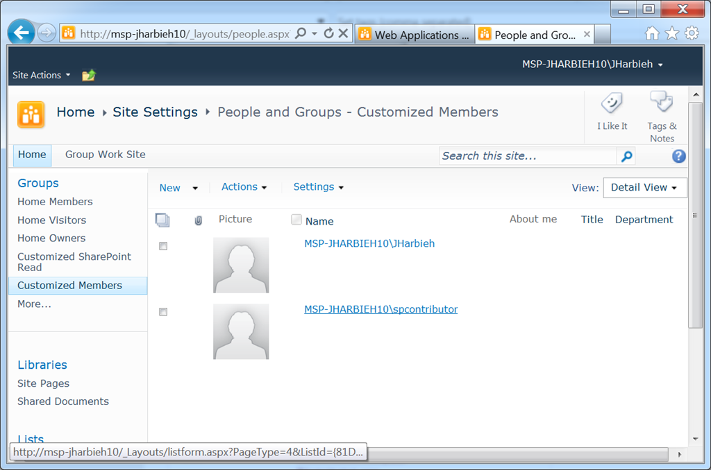 2. The users you are targeting will need to be members of the default Members SharePoint Group or a group with similar Permission Levels. Having additional Site Level permissions, like Add and Customize Pages will not be good and will override what I’m trying to communicate here rendering this blog post useless.